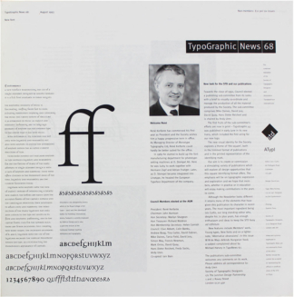 When David Jury, a design historian, author and designer, assumed the editorship in 1996 TypoGraphic was in a slump. Jury revitalised the journal by bringing creative practice to the fore. He commissioned writing from graphic designers, curators, linguists, historian, psychologists – as well as typographers – to provide a broader , more inclusive view of typography’s changing social and commercial role. He also commissioned a different designer for each issue whose working methodology and outlook reflected the theme of that particular issue.