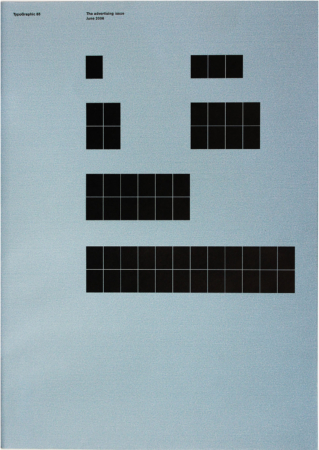 During Jury’s editorial reign (16 issues between 1996 and 2006 – plus two further issues designed by David Quay and Freda Sack dedicated to ISTD bi-annual Awards) the number of pages of each issue steadily grew from 16 to 64 as designers, given a free reign in return for no fee (Jury would describe TypoGraphic to each designer as their own calling card) found ever more inventive ways of making printing budgets go further, often calling in favours owned to them by paper manufacturers, printers and print finishers. The close collaboration between designer and printer became increasingly important as unorthodox means of production were sought to compensate for budget restrictions.