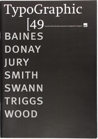TypoGraphic is the journal of the International Society of Typographic designers (ISTD) distributed free to its members. The society was formed in 1928, initially as the Typographer’s Guild, and the journal was first published in 1971. Back then, the journal had no plans to reach a wider audience than the membership, its content reflecting the practical concerns of jobbing typographers. Many of the contributors did not consider themselves to be professional writers, but rather, designers and educators who felt inclined (or allowed themselves to be persuaded by the editor) to share their thoughts with fellow ISTD members.